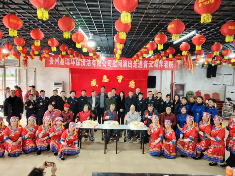 龙马贺岁,福寿同享。2026年2月28日,贵州晶瑞环保清洁有限公司员工和中国国际海陆空救援集团贵州黔南支队志愿者团队,带着蛋糕、水果、粮油、鸡蛋等爱心礼物,走进都匀市颐养天年华庭公寓,与陈显英、罗定义等12名老人一起过集体生日,同时为全体老人送去元宵慰问演出。