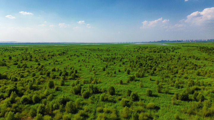 这是生机蓬勃的乌海湖湿地(无人机照片,2024年7月13日摄)