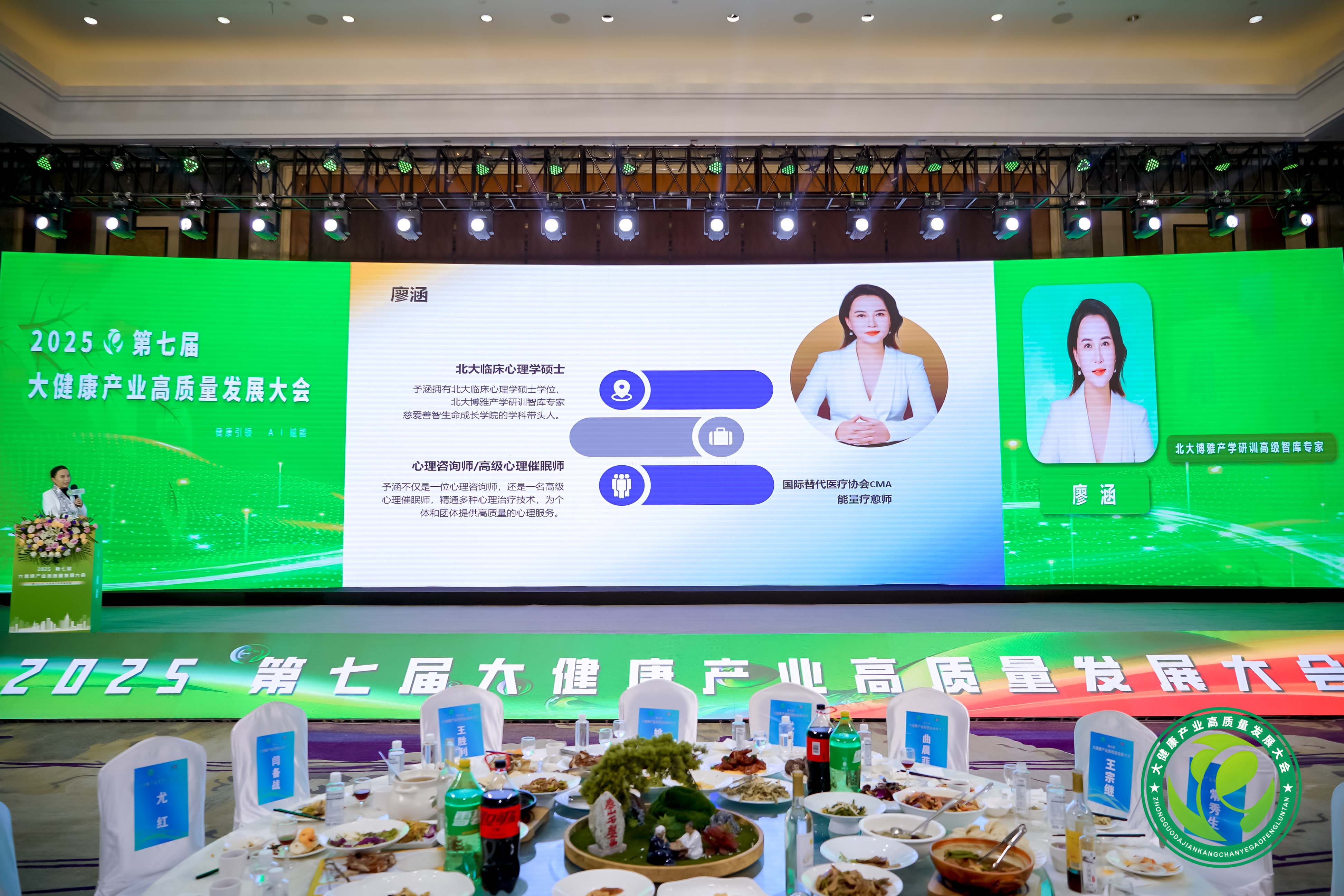 在第七届大健康产业高质量发展大会上,廖涵老师发表主旨演讲,全面分享“身心一体”理念与「生命重建三维体系」的实践成果,引发广泛关注。