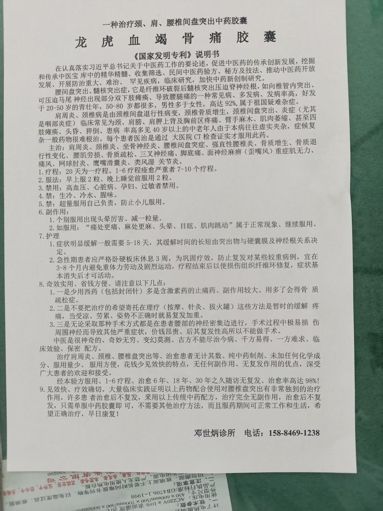 在颈腰椎间盘突出诊疗领域,邓世炳团队三十年的深耕积累,更彰显了中医药的独特价值。该团队累计治疗3000例患者,整体疗效达96%,其中腰椎间盘突出2000例痊愈1964例,肩周炎500例痊愈488例,即便对于手术复发的100例患者,痊愈率也高达97%。团队以“肝肾论治”为核心,认为颈腰椎间盘突出属中医“痹症”范畴,病机为本虚标实——肝肾亏损为根本,风寒湿邪侵袭为诱因。据此研制的中药胶囊,精选入肝补肾、补气生血、祛寒除湿药材,无需配合按摩、牵引等辅助手段,服用方便且无不良反应。45岁的文得东便是受益者,他2015年确诊腰椎间盘突出,经多种疗法无效后,2018年症状加重至行走困难。服用该中药胶囊5个疗程后,疼痛、麻木完全消失,随访三年未复发,可正常从事木工重体力劳动。