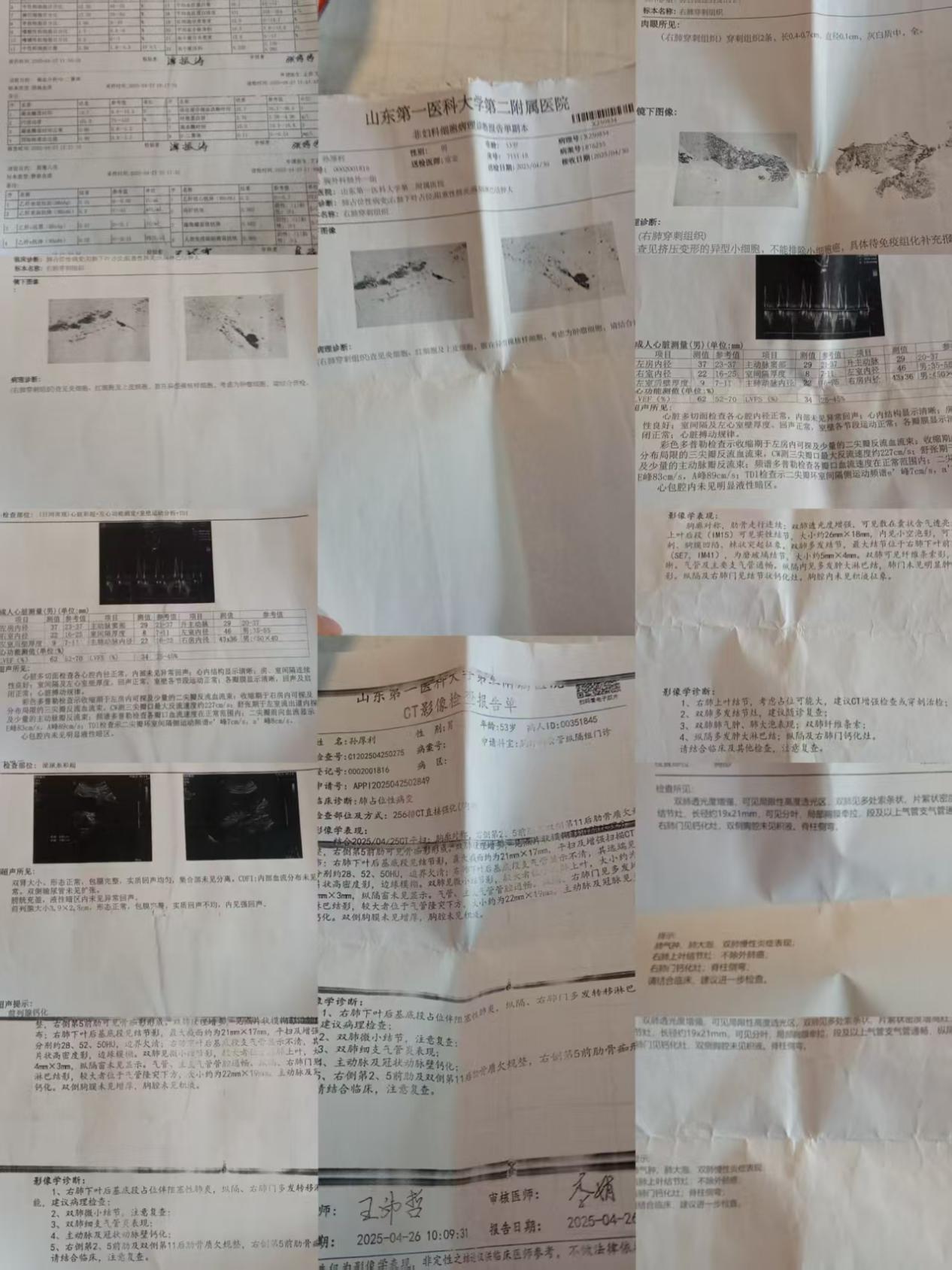 孙先生因腰痛前往山东第一医科大学第二附属医院就诊,临床诊断为腰痛,并进行了泌尿系彩超检查,结果显示前列腺钙化,双肾、双侧输尿管及膀胱未见明显异常 。然而,进一步针对肺部的检查发现了更为严重的问题。