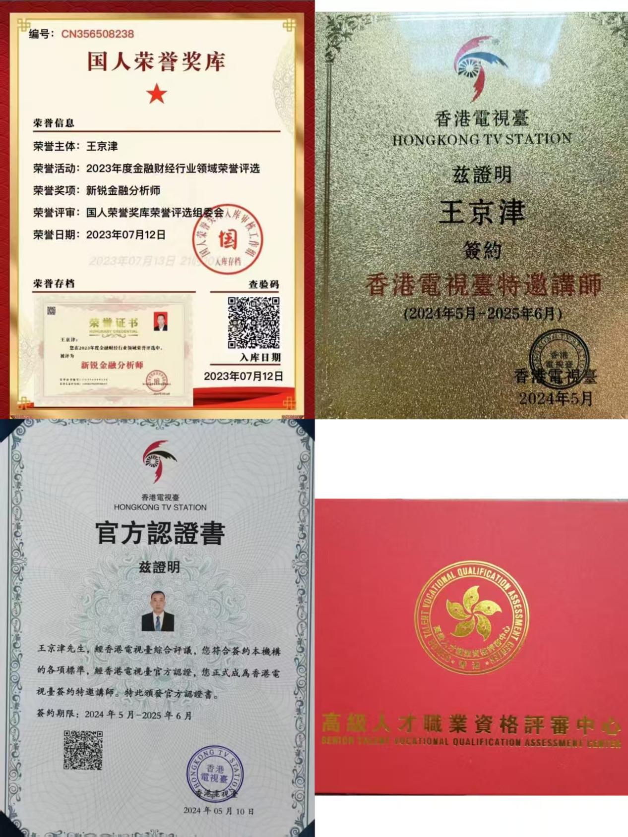 王京津:一位在金融财经与企业规划领域崭露头角的专业人士。他荣获“2023年度金融财经行业新锐金融分析师”称号,其荣誉信息被纳入“国人荣誉奖库”(编号:CN356508238)。同时,他拥有由高级人才职业资格评审中心颁发的高级企业规划师证书(证书编号:STVQAC2307282),具备扎实的企业规划专业知识与技能。此外,他还被香港电视台正式认证为签约特邀讲师,在专业领域的见解与能力得到了广泛认可。