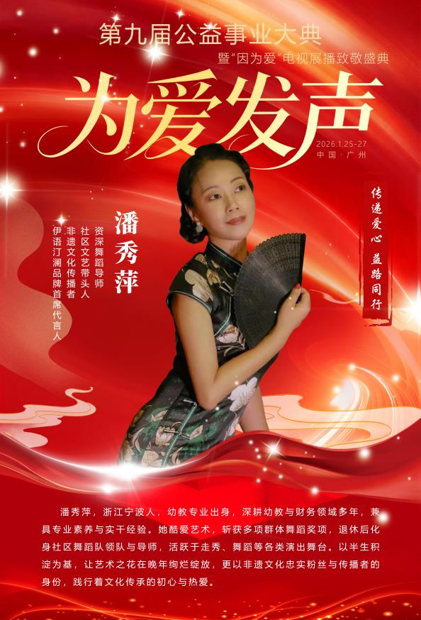 潘秀萍,浙江宁波人,幼教专业出身,深耕幼教与财务领域多年,兼具专业素养与实干经验。她酷爱艺术,斩获多项群体舞蹈奖项,退休后化身社区舞蹈队领队与导师,活跃于走秀、舞蹈等各类演出舞台。以半生积淀为基,让艺术之花在晚年绚烂绽放,更以非遗文化忠实粉丝与传播者的身份,践行着文化传承的初心与热爱。