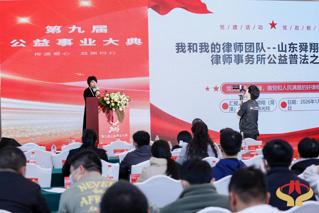 活动由第十一届全国人大常委会财经委副主任贺铿宣布开幕,并就公益活动的历史、方向和将来进行了精彩细致的开幕演讲,接着来自全国各地的公益企业、公益个人一一就自己从事的行业在公益活动,公益研究,公益成果等方面进行了现场分享,公益活动所进行的层次各不相同,以人人为我,我为人人的互助理念,赢得了现场所有嘉宾的热烈掌声。其中,山东舜翔(菏泽)律师事务所主任、党支部书记韩光玲带领的公益普法团队,以 “法治聚合力,公益惠民生” 为主题,分享了个人与团队深耕法律公益的实践之路。