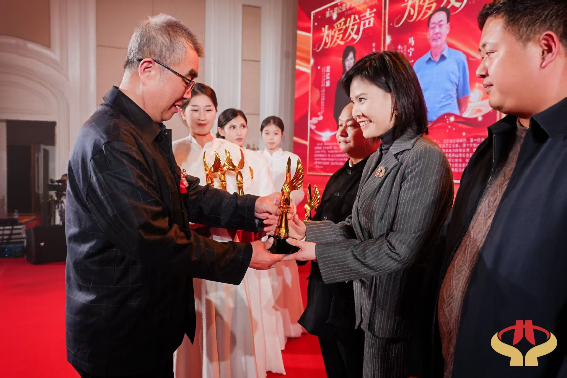 盛典现场最令人动容的瞬间,莫过于公益人物致敬礼环节。聚光灯缓缓聚焦,郑秋红女士站上舞台中央,国务院办公厅行政司原常务副司长王胜利亲临现场,为她颁发2025年度公益传播大使荣誉证书与奖杯。这份沉甸甸的荣誉,既是对她深耕公益事业的肯定与嘉奖,更凝聚着一份温暖的责任,让她的公益初心与付出,在万众瞩目下被看见、被弘扬、被传递。