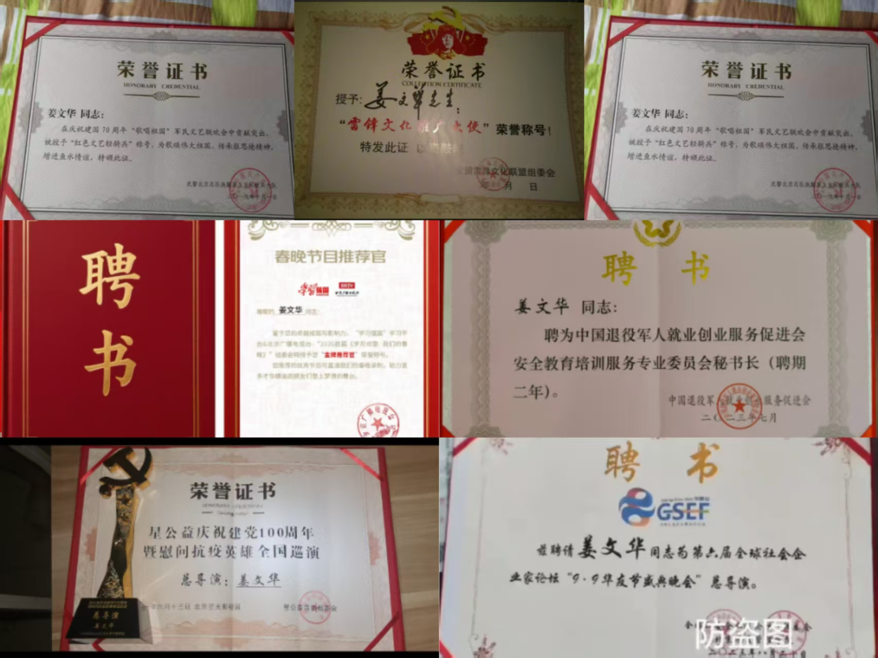 在文艺活动导演领域,姜文华的专业能力同样收获权威认可,2024年1月,其凭借2024“秦汉九原好戏连台”迎新春非遗音乐会的出色执导,荣获包头市九原区文体旅游广电局颁发的“最佳导演奖”;2024年11月,在2024中国·雷山苗年暨鼓藏节系列活动的“苗岭笙歌”民族音乐会上,他以极具民族特色的舞台编排与统筹能力,再度斩获雷山县文体广电旅游局授予的“最佳导演奖”。两座权威奖项成为其深耕文艺舞台、传承民族文化的坚实注脚。业内人士对其评价颇高,军旅书法家林继福称其“吃苦耐劳、亲历亲为,组织活动能力突出”,著名制片人、编剧张年胜评价其“兢兢业业、一丝不苟,是提携新人的好前辈”,诸多赞誉印证了其在影视行业的专业口碑与行业影响力。