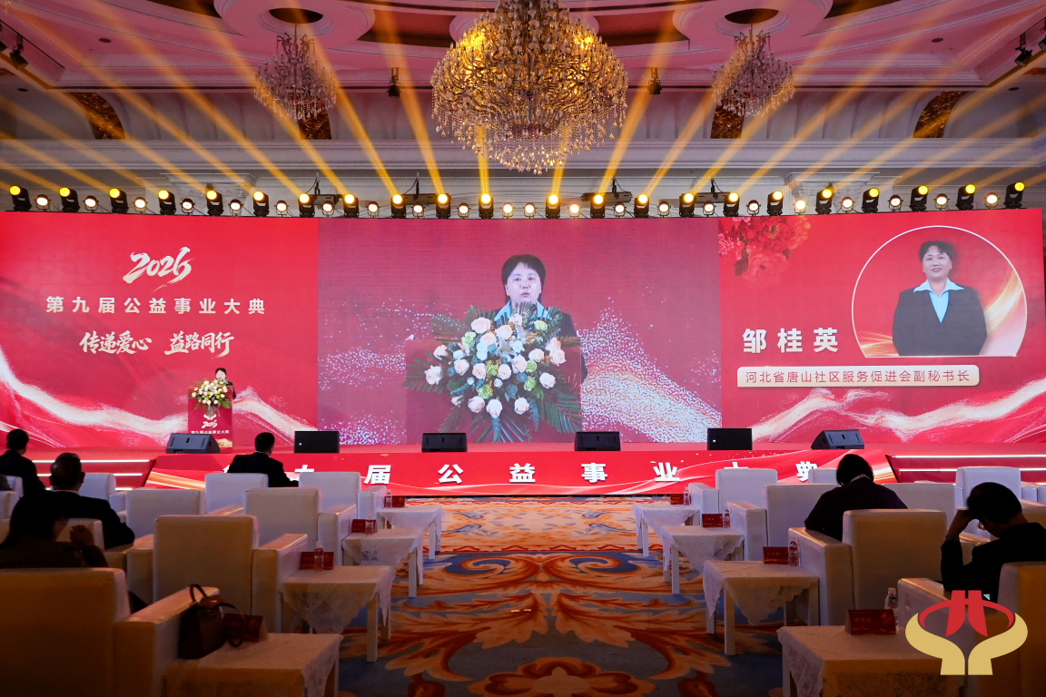 在第九届公益事业大典的璀璨舞台上,河北省(唐山)社区服务促进会秘书长邹桂英作为特邀贵宾深情发声